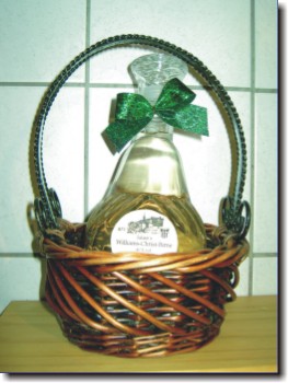 Flasche mit echter Williams-Birne im Präsentkorb